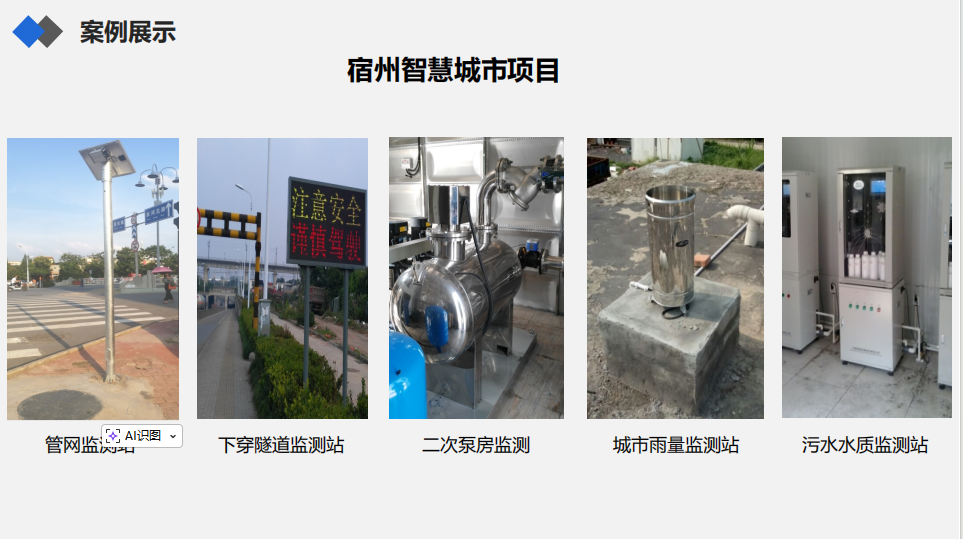 2.宿州智慧城市项目:搭建管网/下穿隧道监测站、城市雨量监测站、污水水质监测站,提升城市供排水与防汛管理能力;