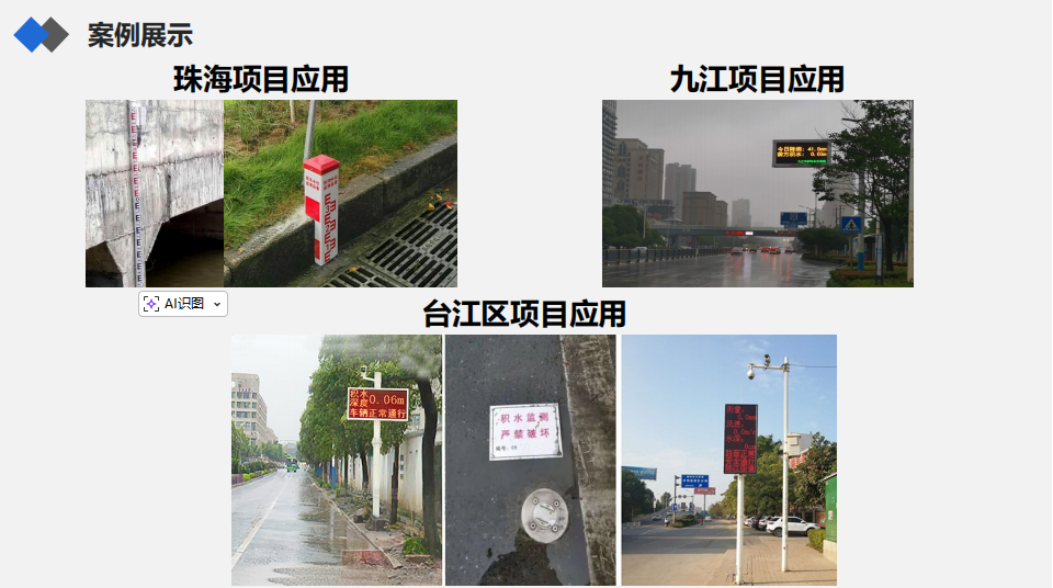3.珠海/九江/台江区项目:部署积水监测站、河道监测站等设备,实现区域水利、水务要素实时监测与预警,获当地水利管理部门高度认可。